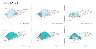 這個自由型態的遮蓋由Karamba的幾個建立結構的步驟建立,最主要需要資料的驅動、每一個步驟的結構分析能夠形成更好的幾何/模式的選擇。